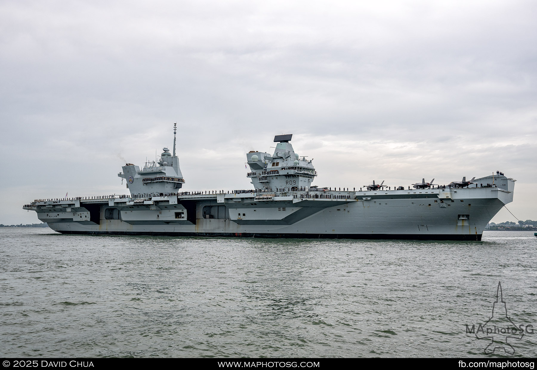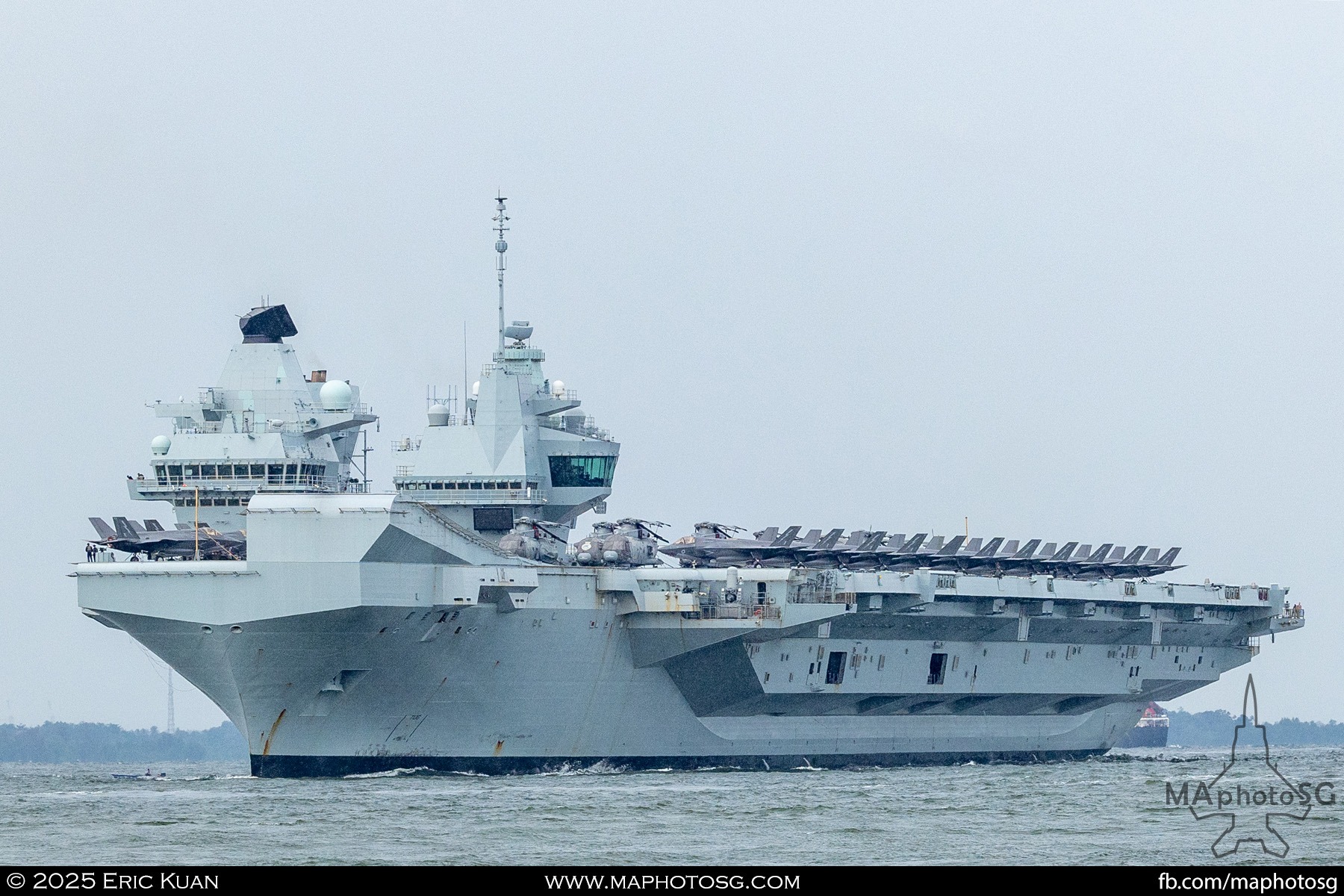 23 June 2025 – The U.K.’s Carrier Strike Group (CSG), led by aircraft carrier HMS Prince of Wales (R09), arrived this afternoon at Marina Bay Cruise Centre Singapore (MBCCS) for a historic port call. This marks the first time an operational navy vessel has docked at MBCCS and represents a major milestone for the CSG after entering the Indo-Pacific region on 18 June.