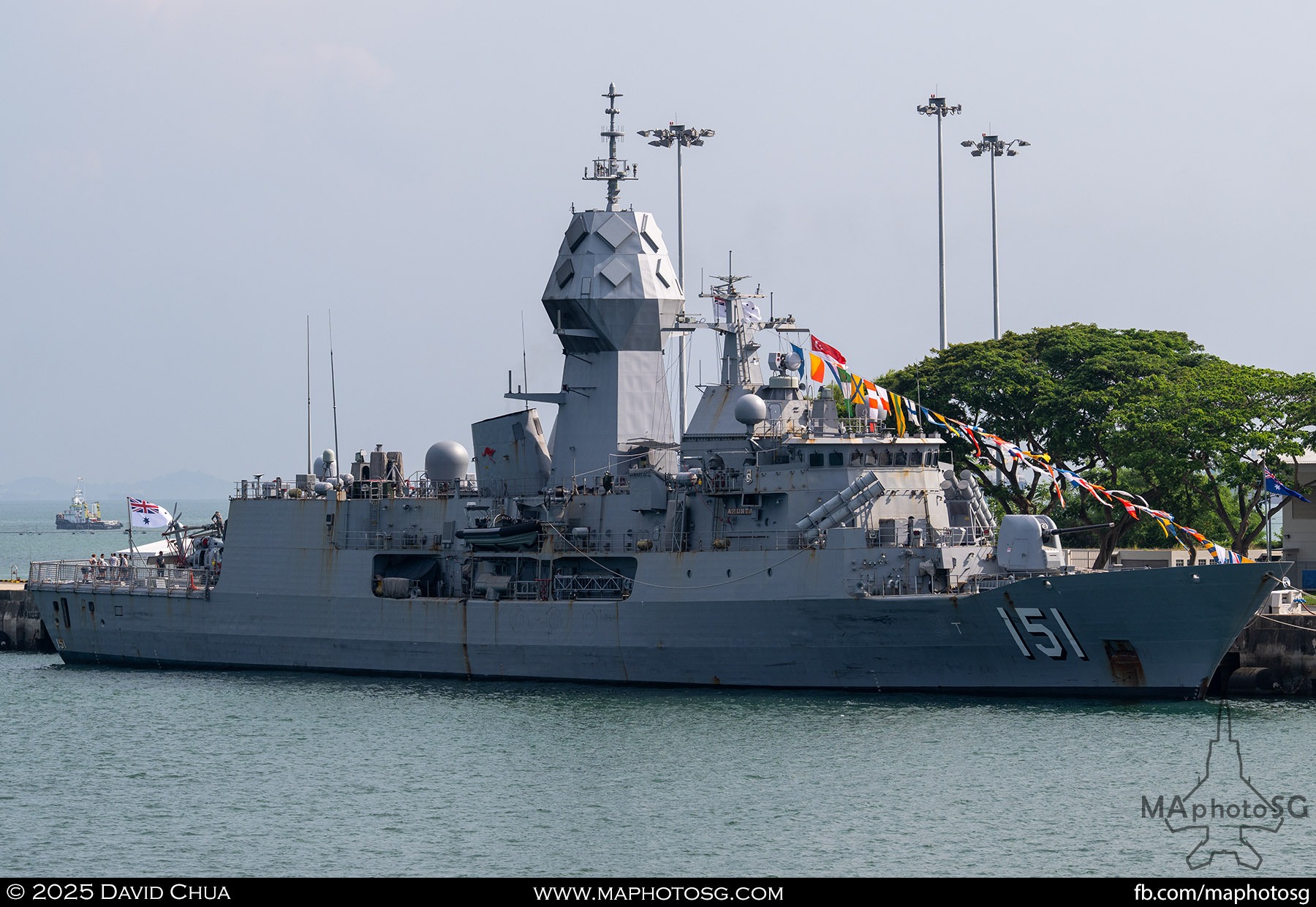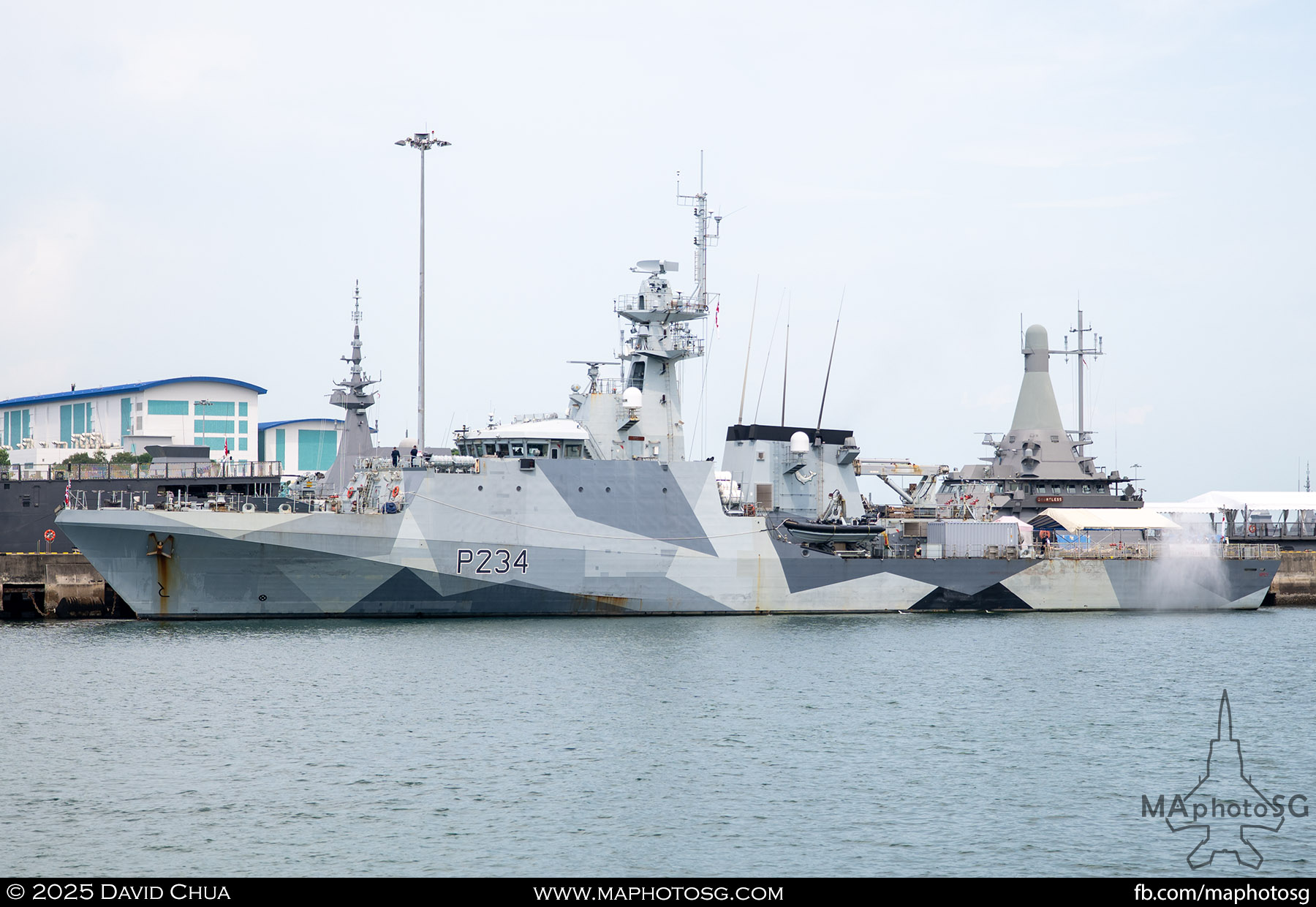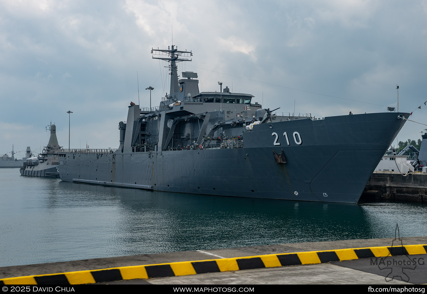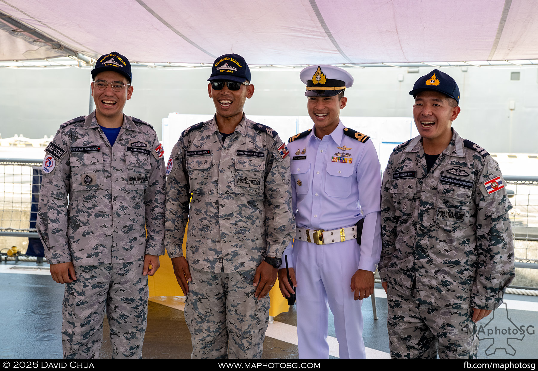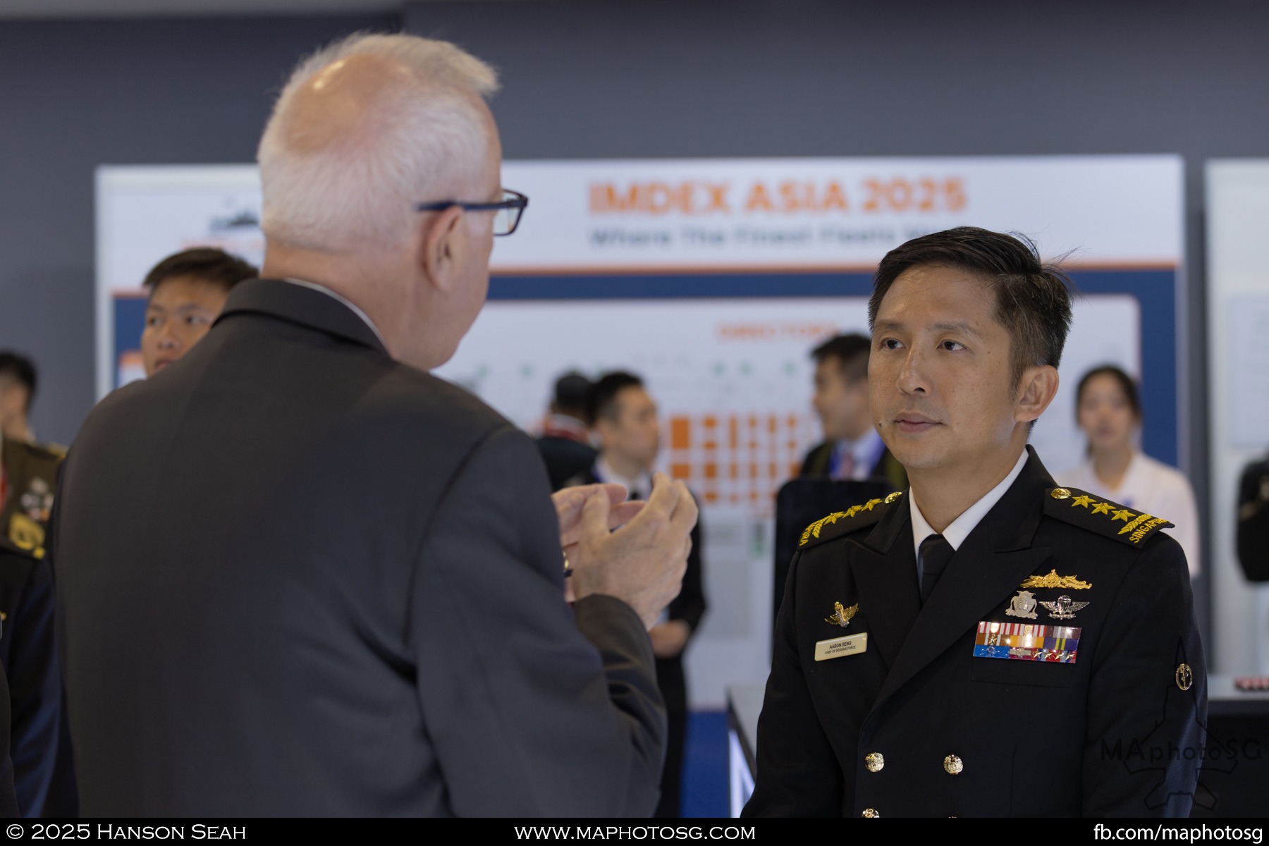 13. From left to right: KDB Darussalam, PLANS Xuchang, PLANS Chishui, SLNS Samudura.14. PLANS Xuchang, a Type 054A frigate of the People’s Liberation Army Navy (PLAN).15. The 32-cell vertical launching system (VLS) located on the bow of PLANS Xuchang.16. A single 76mm H/PJ26 naval gun located on the bow of PLANS Xuchang.17. PLAN patch worn by sailors aboard the Xuchang frigate.18. A Harbin Z-9C helicopter nested in the hangar of PLANS Xuchang.19. HTMS Prachuap Khiri Khan, a Krabi-class offshore patrol vessel (OPV) of the Royal Thai Navy (RTN).20. The Garuda—a renowned figure in Hindu and Buddhist mythology and the national emblem of Thailand—seen onboard HTMS Prachuap Khiri Khan.21. A patch worn by an RTN sailor commemorates 60 years of diplomatic ties between Singapore and Thailand.22. RTN sailors pose for a group photo.23. KRI Kerambit (left) and KRI Bung Karno (right) of the Indonesian Navy (TNI-AL).24. A TNI-AL sailor poses for a photo on the bridge of KRI Bung Karno.25. Polished furnishings on the bridge of KRI Bung Karno, which serves the unique role of a “VVIP Presidential Helicopter-Carrying-Missile Corvette.”26. Reception area onboard KRI Bung Karno.27. KRI Bung Karno is named after Indonesia’s first President, Sukarno.28. Conference room onboard KRI Bung Karno.29. The luxurious presidential suite onboard KRI Bung Karno.30. The main naval gun, the Bofors 57mm Mk3, on the bow of KRI Kerambit.31. The secondary gun, an M71/08 20mm autocannon, is located at the stern of KRI Kerambit.32. A sailor from the Royal Brunei Navy (TLDB) poses for a photo onboard KDB Darussalam.33. IMDEX Asia 2025 participation patch worn by a TLDB sailor.34. Bridge of KDB Darussalam.35. Communal area onboard RSS Dauntless of the Republic of Singapore Navy (RSN).36. Two slipways at the stern of RSS Dauntless allow for the rapid launch and recovery of RHIBs or USVs.37. RSS Tenacious (left) and RSS Intrepid (right), Formidable-class stealth frigates of the RSN.38. Bridge of RSS Tenacious.39. A military expert from RSS Tenacious explains duties carried out at the engineering station.40. Patch worn by a sailor from RSS Tenacious.41. An RSN sailor poses for photos on the helicopter deck of RSS Tenacious.42. Maritime Security Unmanned Surface Vessel (MARSEC USV) of the RSN.43. ITS Antonio Marceglia, a FREMM frigate of the Italian Navy. It is on a six-month Indo-Pacific campaign that saw participation in IMDEX Asia, LIMA, and the Osaka Expo.44. INS Kiltan, an anti-submarine warfare corvette of the Indian Navy.45. HMAS Arunta, an Anzac-class frigate of the Royal Australian Navy.46. HMS Spey, a Batch 2 River-class OPV of the Royal Navy.47. USS Dewey, an Arleigh Burke-class guided-missile destroyer of the United States Navy.48. JS Yahagi, a Mogami-class frigate of the Japan Maritime Self-Defense Force.49. KD Lekir, a Kasturi-class corvette of the Royal Malaysian Navy.50. RSS Endeavour, an Endurance-class landing ship tank of the RSN.