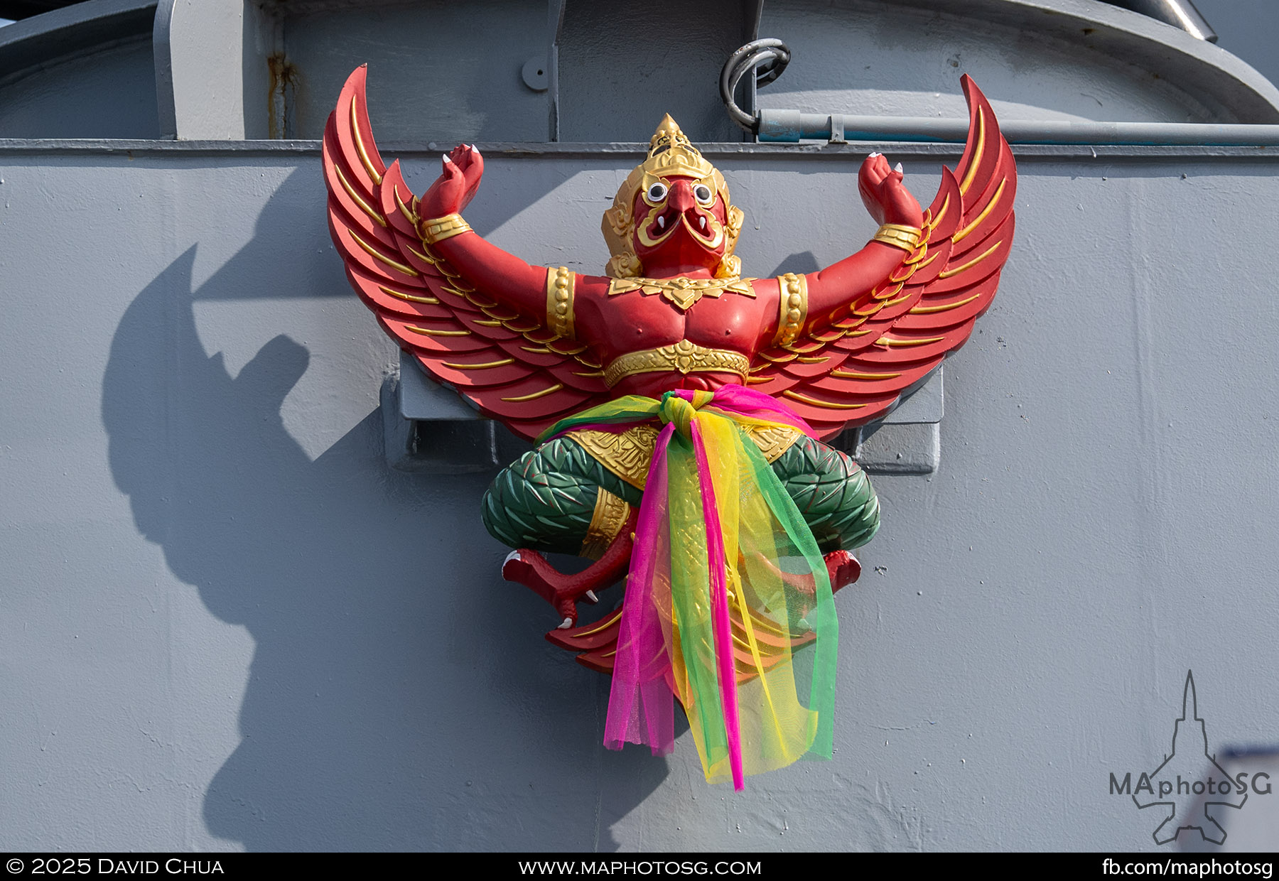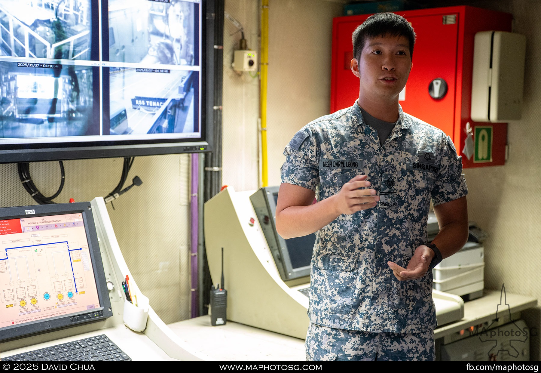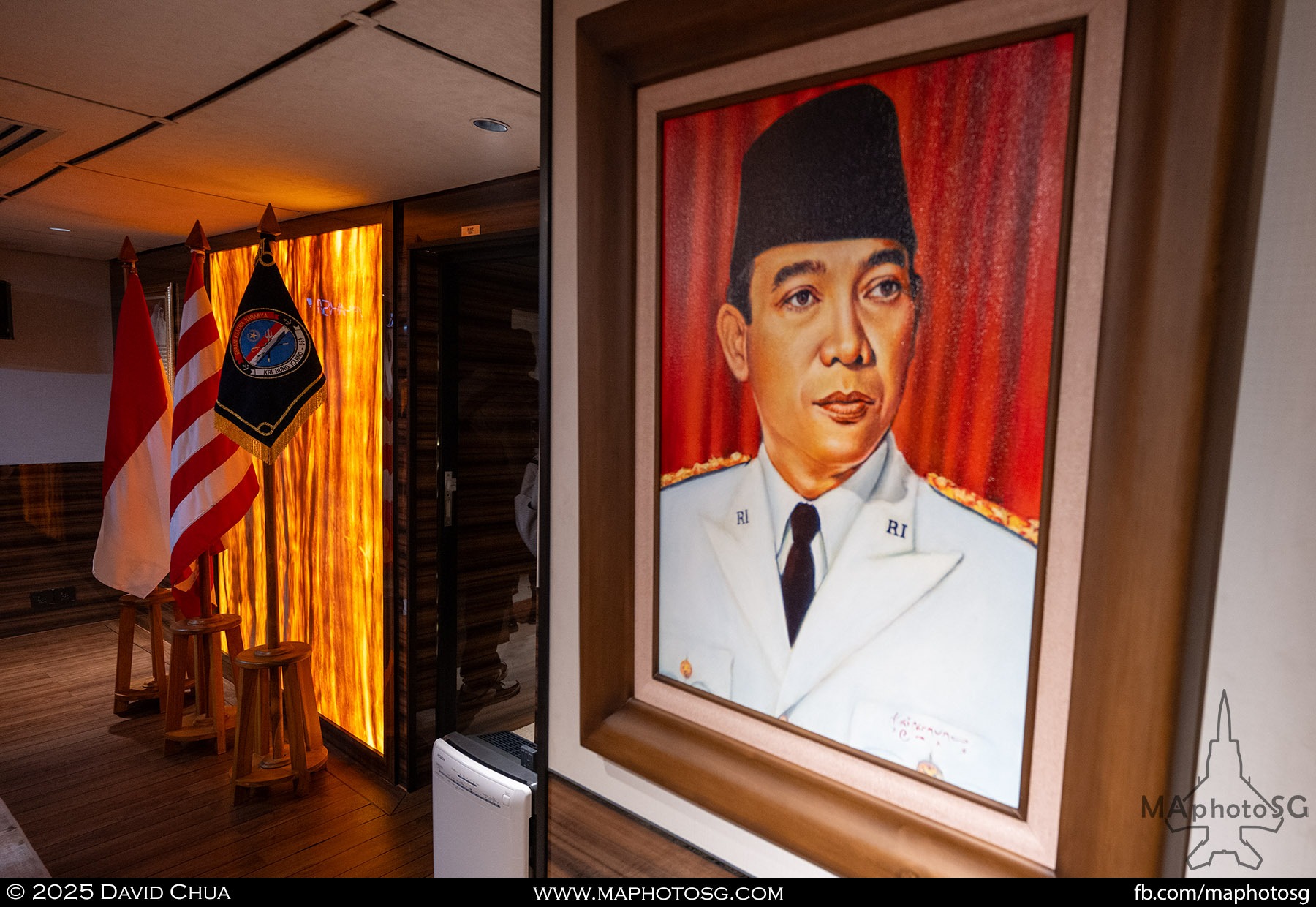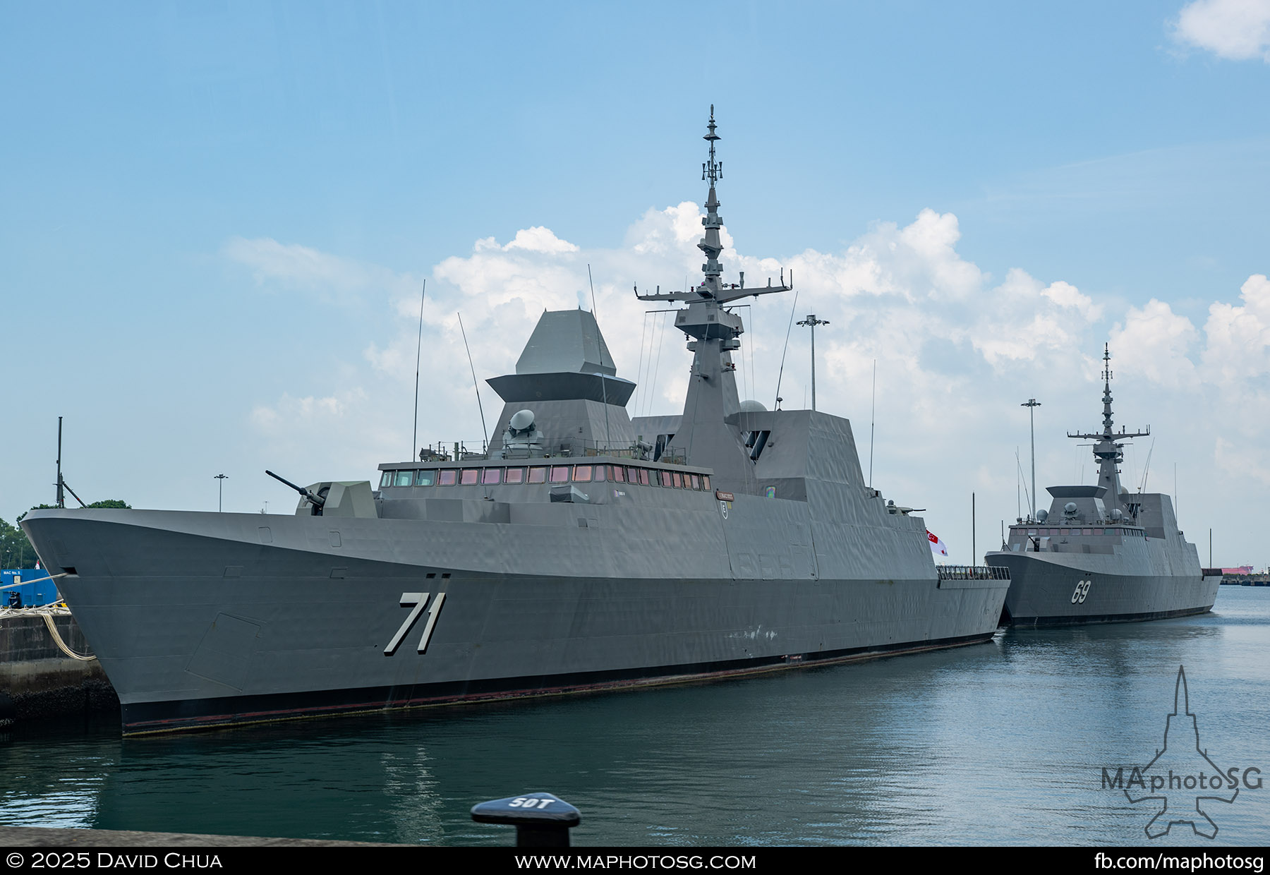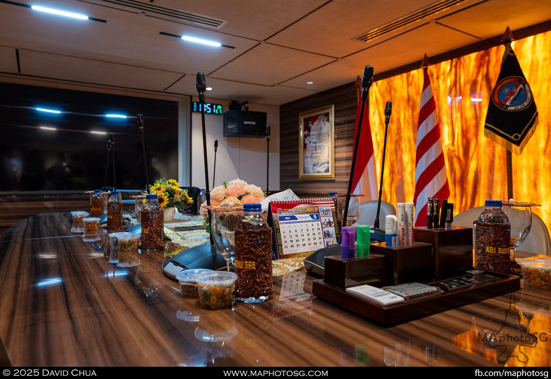13. From left to right: KDB Darussalam, PLANS Xuchang, PLANS Chishui, SLNS Samudura.14. PLANS Xuchang, a Type 054A frigate of the People’s Liberation Army Navy (PLAN).15. The 32-cell vertical launching system (VLS) located on the bow of PLANS Xuchang.16. A single 76mm H/PJ26 naval gun located on the bow of PLANS Xuchang.17. PLAN patch worn by sailors aboard the Xuchang frigate.18. A Harbin Z-9C helicopter nested in the hangar of PLANS Xuchang.19. HTMS Prachuap Khiri Khan, a Krabi-class offshore patrol vessel (OPV) of the Royal Thai Navy (RTN).20. The Garuda—a renowned figure in Hindu and Buddhist mythology and the national emblem of Thailand—seen onboard HTMS Prachuap Khiri Khan.21. A patch worn by an RTN sailor commemorates 60 years of diplomatic ties between Singapore and Thailand.22. RTN sailors pose for a group photo.23. KRI Kerambit (left) and KRI Bung Karno (right) of the Indonesian Navy (TNI-AL).24. A TNI-AL sailor poses for a photo on the bridge of KRI Bung Karno.25. Polished furnishings on the bridge of KRI Bung Karno, which serves the unique role of a “VVIP Presidential Helicopter-Carrying-Missile Corvette.”26. Reception area onboard KRI Bung Karno.27. KRI Bung Karno is named after Indonesia’s first President, Sukarno.28. Conference room onboard KRI Bung Karno.29. The luxurious presidential suite onboard KRI Bung Karno.30. The main naval gun, the Bofors 57mm Mk3, on the bow of KRI Kerambit.31. The secondary gun, an M71/08 20mm autocannon, is located at the stern of KRI Kerambit.32. A sailor from the Royal Brunei Navy (TLDB) poses for a photo onboard KDB Darussalam.33. IMDEX Asia 2025 participation patch worn by a TLDB sailor.34. Bridge of KDB Darussalam.35. Communal area onboard RSS Dauntless of the Republic of Singapore Navy (RSN).36. Two slipways at the stern of RSS Dauntless allow for the rapid launch and recovery of RHIBs or USVs.37. RSS Tenacious (left) and RSS Intrepid (right), Formidable-class stealth frigates of the RSN.38. Bridge of RSS Tenacious.39. A military expert from RSS Tenacious explains duties carried out at the engineering station.40. Patch worn by a sailor from RSS Tenacious.41. An RSN sailor poses for photos on the helicopter deck of RSS Tenacious.42. Maritime Security Unmanned Surface Vessel (MARSEC USV) of the RSN.43. ITS Antonio Marceglia, a FREMM frigate of the Italian Navy. It is on a six-month Indo-Pacific campaign that saw participation in IMDEX Asia, LIMA, and the Osaka Expo.44. INS Kiltan, an anti-submarine warfare corvette of the Indian Navy.45. HMAS Arunta, an Anzac-class frigate of the Royal Australian Navy.46. HMS Spey, a Batch 2 River-class OPV of the Royal Navy.47. USS Dewey, an Arleigh Burke-class guided-missile destroyer of the United States Navy.48. JS Yahagi, a Mogami-class frigate of the Japan Maritime Self-Defense Force.49. KD Lekir, a Kasturi-class corvette of the Royal Malaysian Navy.50. RSS Endeavour, an Endurance-class landing ship tank of the RSN.