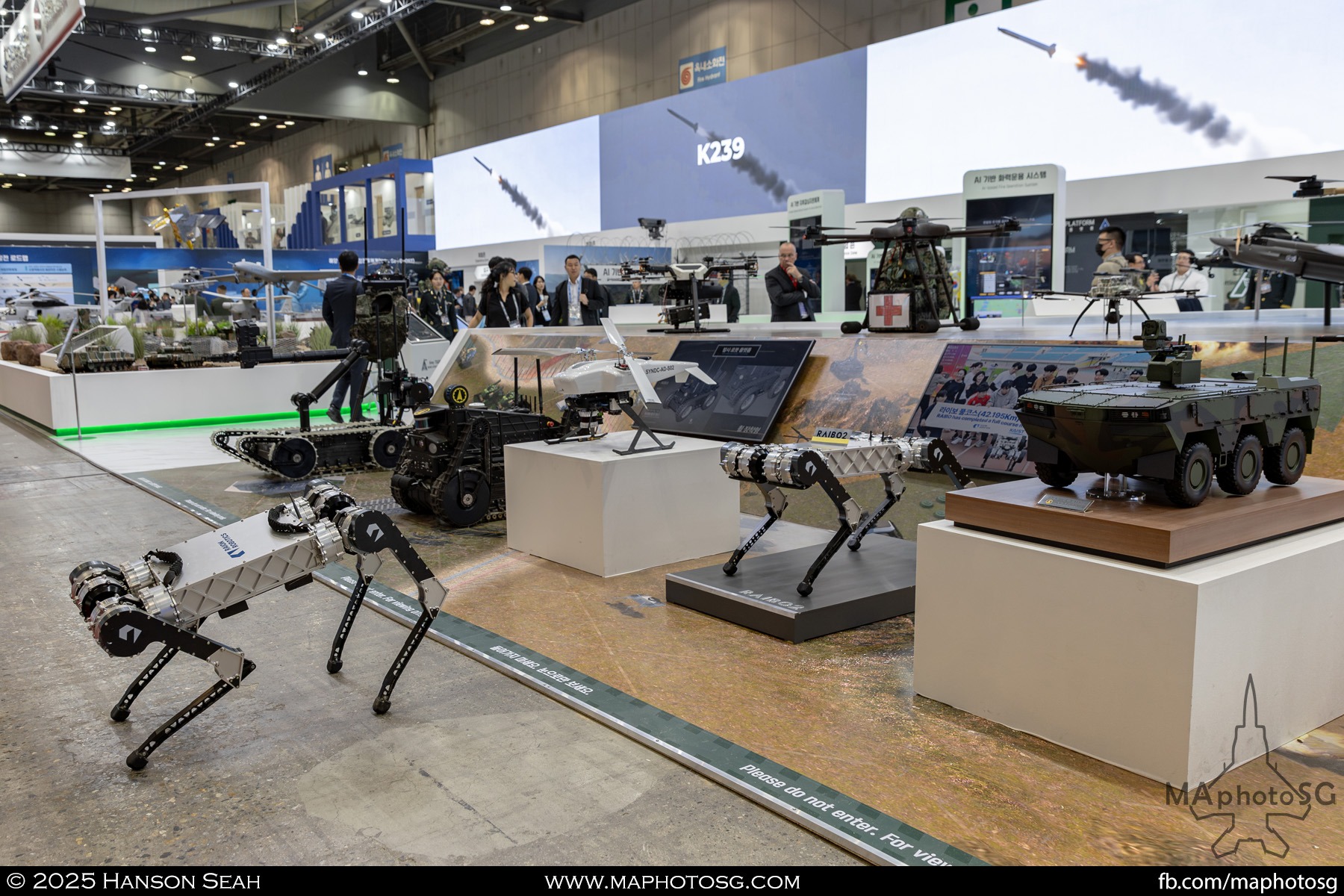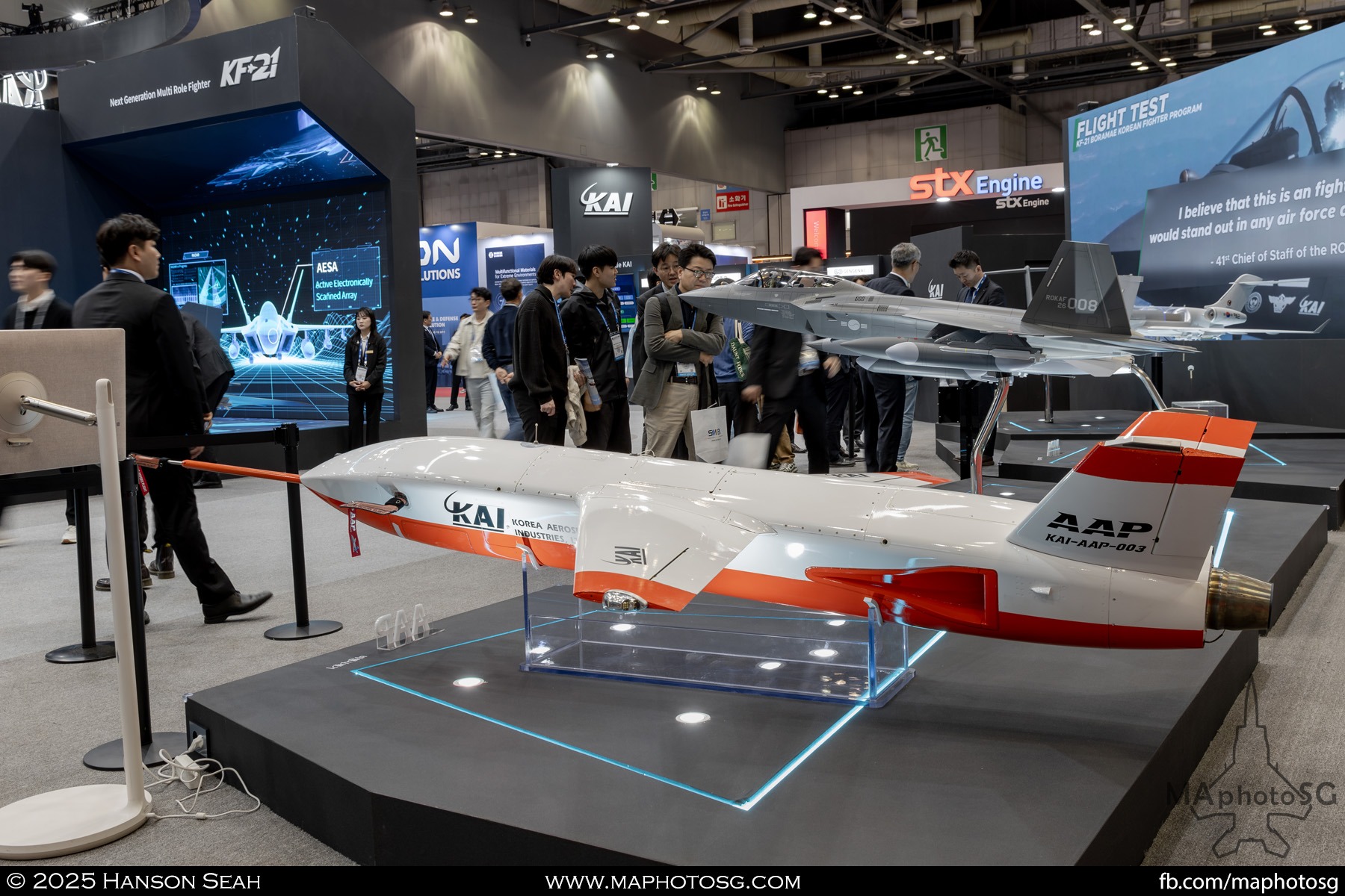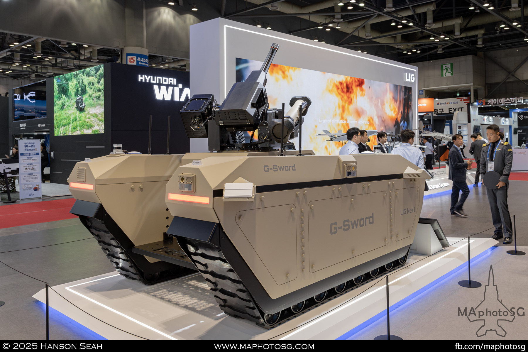 Artificial intelligence and hybrid manned–unmanned systems emerged as dominant themes for the show. Major defence firms presented systems reflecting these trends: Hanwha showcased the Loitering-Type Precision Guided Weapon (L-PGW) and Themis-K unmanned ground vehicle; LIG Nex1 unveiled the G-Sword system; and Korea Aerospace Industries (KAI) highlighted its Adaptable Aerial Platform (AAP) prototype, which is flown by the K-AI Pilot.