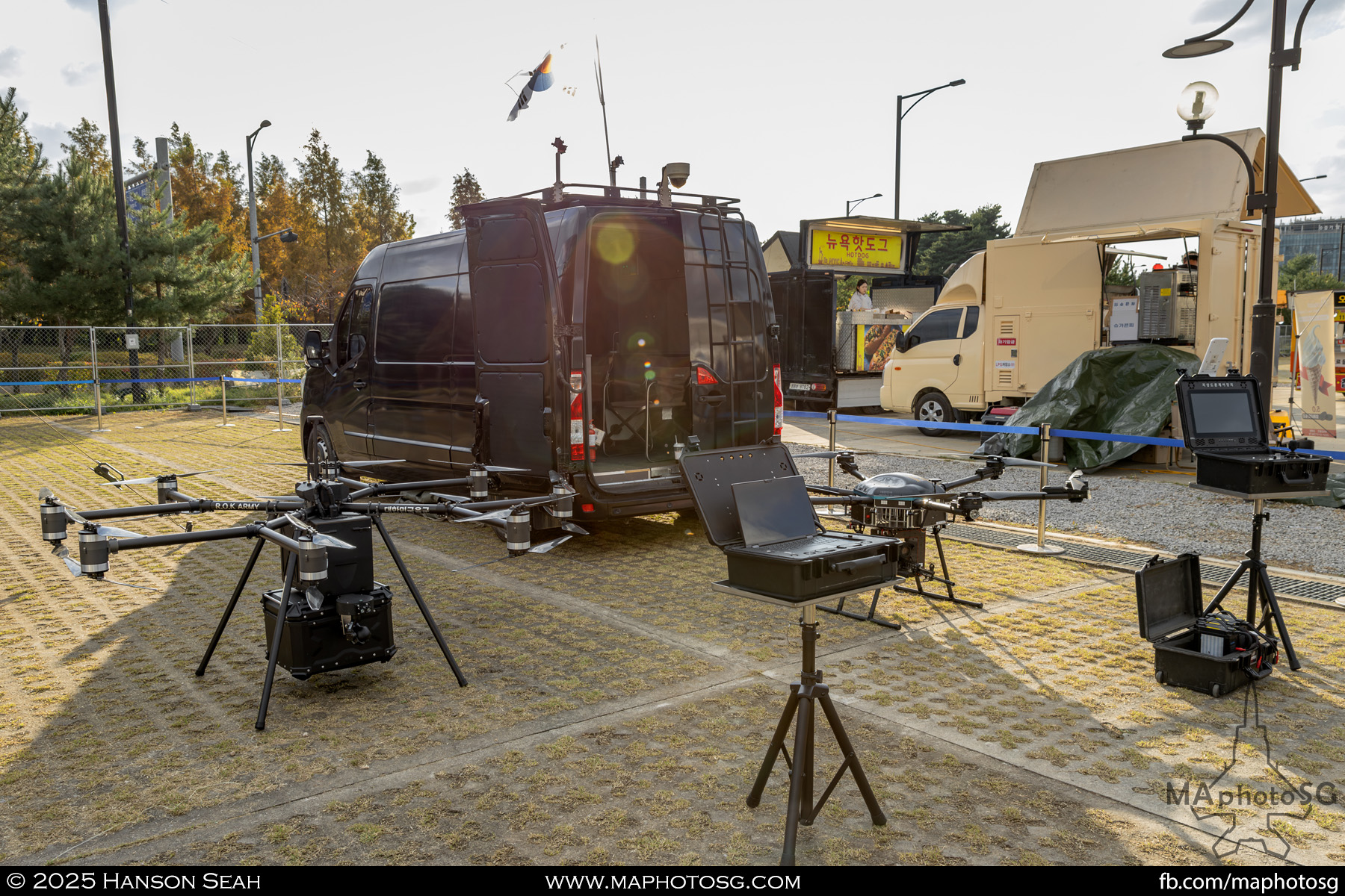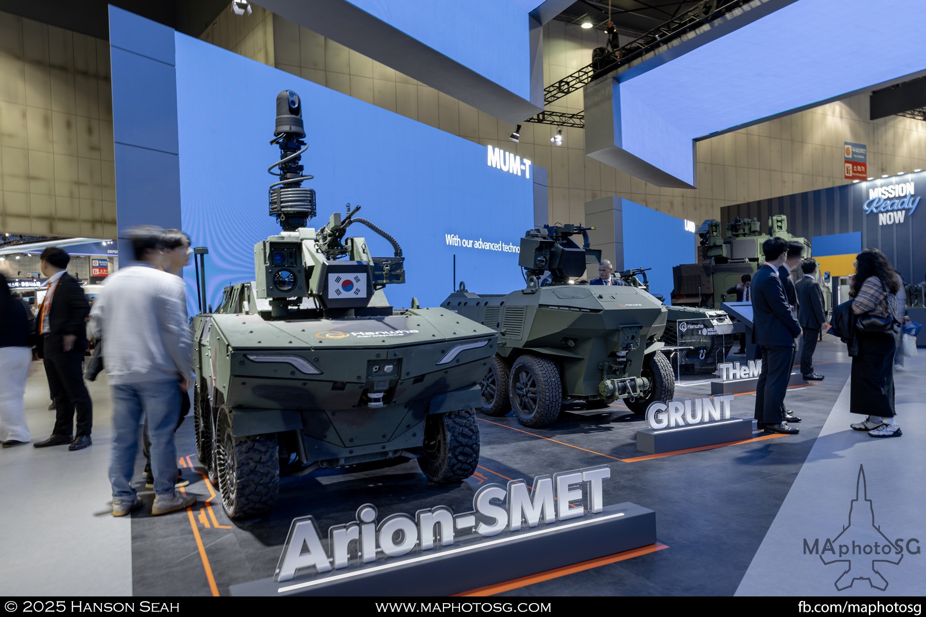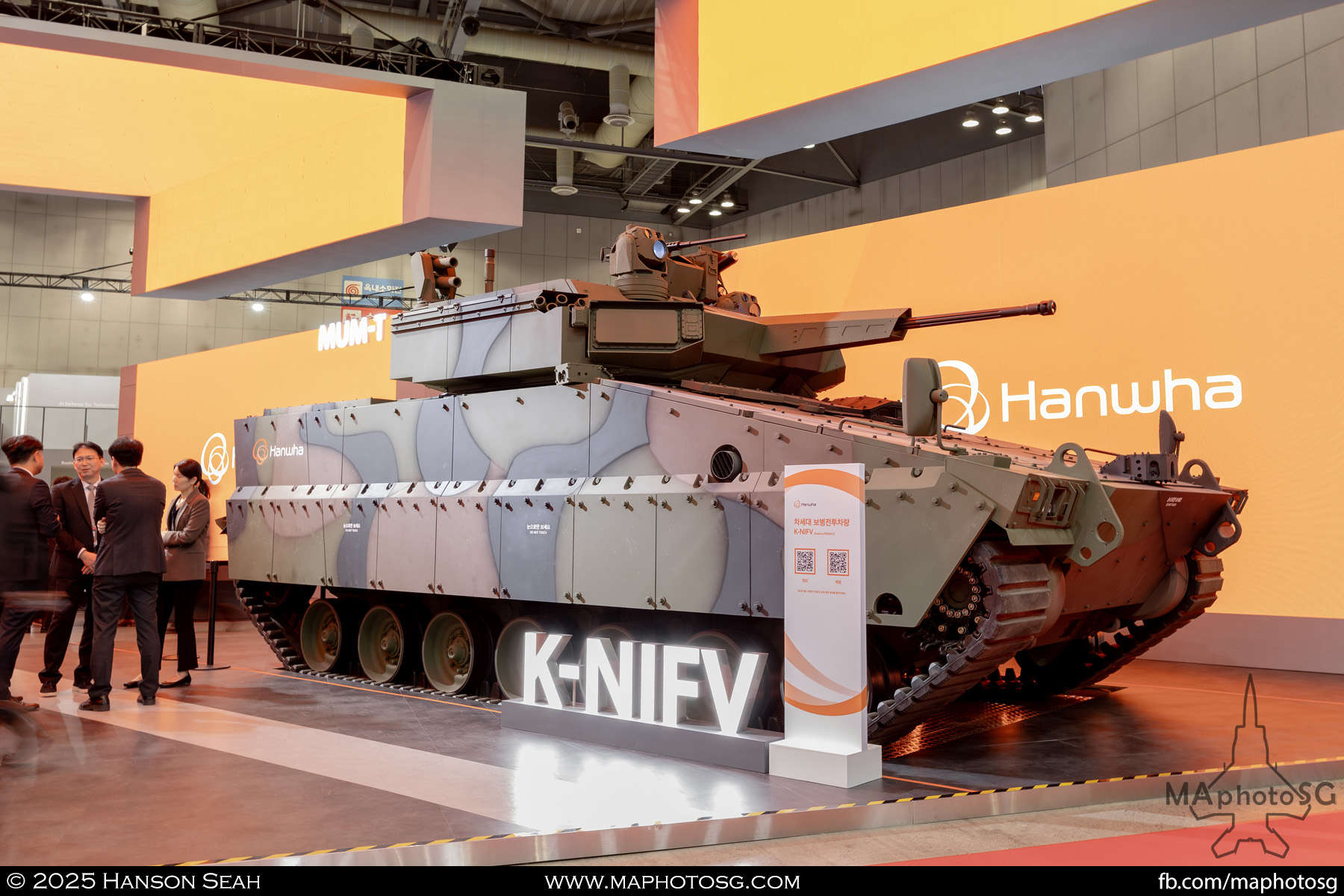 Artificial intelligence and hybrid manned–unmanned systems emerged as dominant themes for the show. Major defence firms presented systems reflecting these trends: Hanwha showcased the Loitering-Type Precision Guided Weapon (L-PGW) and Themis-K unmanned ground vehicle; LIG Nex1 unveiled the G-Sword system; and Korea Aerospace Industries (KAI) highlighted its Adaptable Aerial Platform (AAP) prototype, which is flown by the K-AI Pilot.
