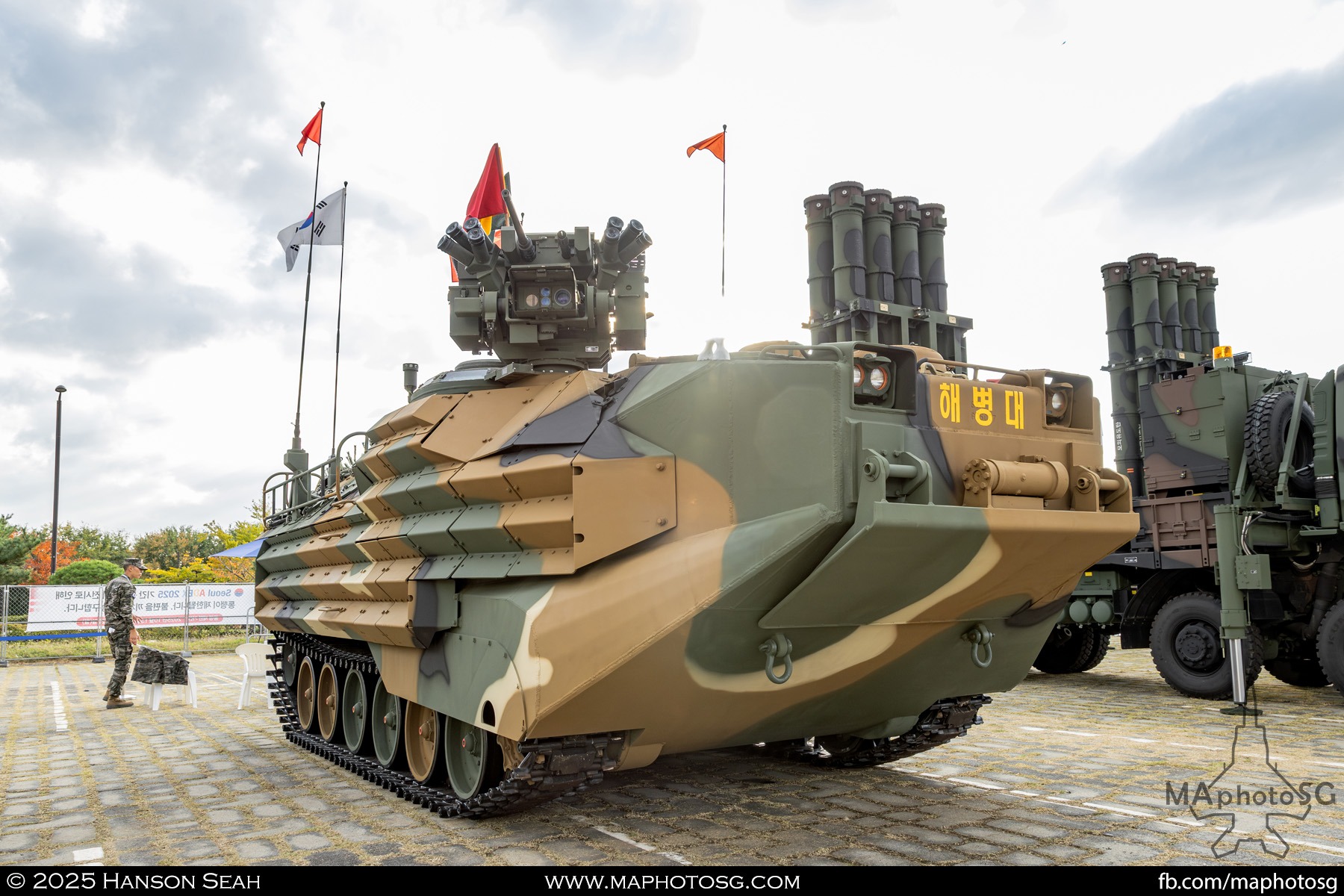 The outdoor exhibition area presented a comprehensive display of 43 types of K-Defence equipment, many of which represent established export products. These included the K9 self-propelled howitzer, K2 main battle tank, K239 Chunmoo Multiple Launch Rocket System (MLRS) and Cheongung Medium-range Surface-to-Air Missile (M-SAM) system.