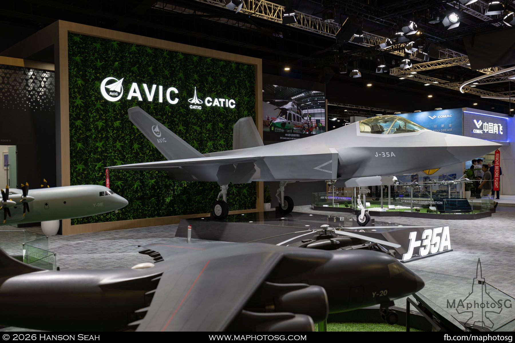 - Prominently showcased the J-35A, featuring a 1:2 scale mock-up of the stealth multirole fighter at its exhibition booth.
